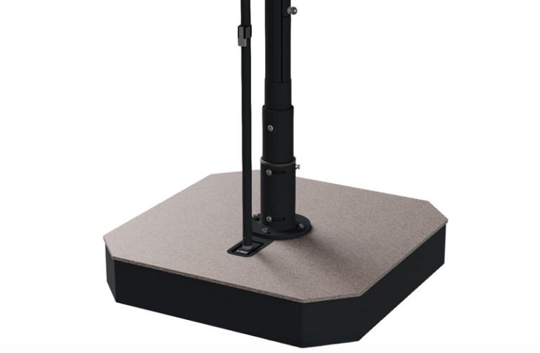 There is a choice of mobile and permanent Pure ground mounts. The mobile ones are characterized by greater flexibility in terms of location and conditions. Structural measures are necessary when installing stationary ground fixings. All floor fixings are HT hot-dip galvanized and powder-coated in traffic white | RAL 9016 or anthracite grey | RAL 7016, fine structure matt. For exceptions, see individual descriptions.