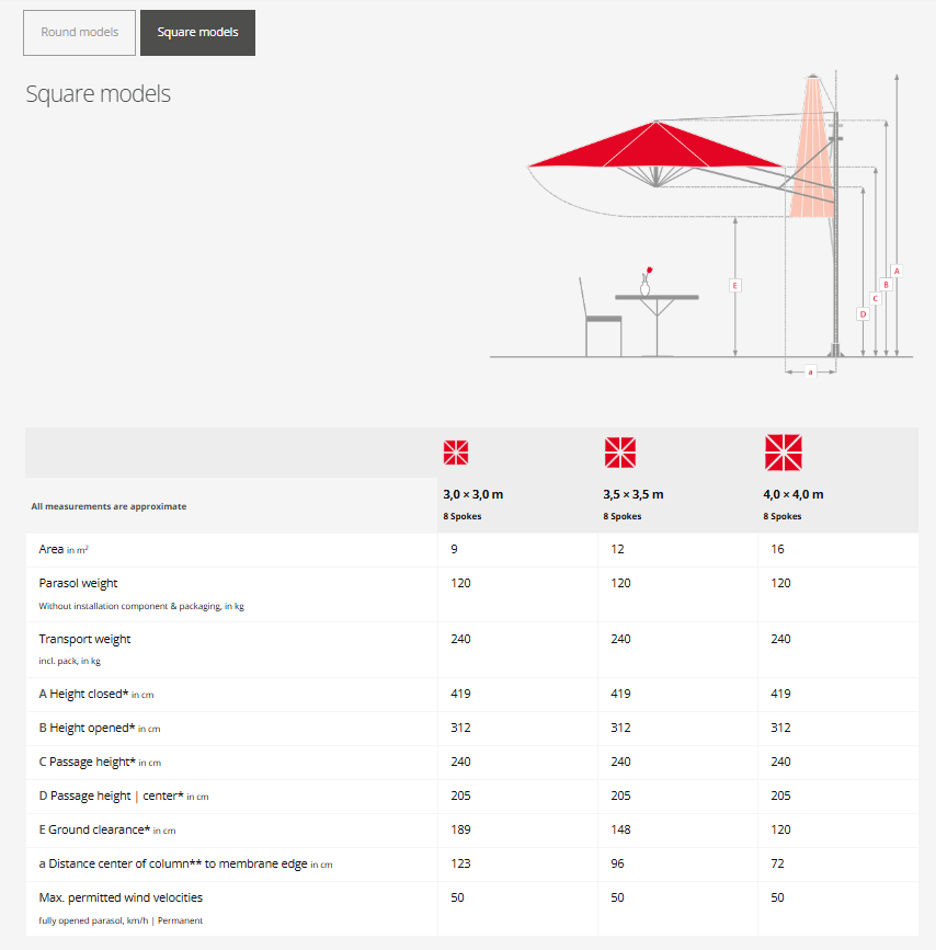 - Newest generation of infrared radiators that can remain in the closed parasol