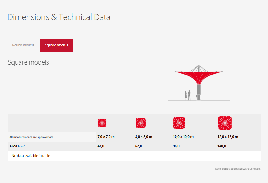 - Parasol weight approx. 800 – 2,350 kg