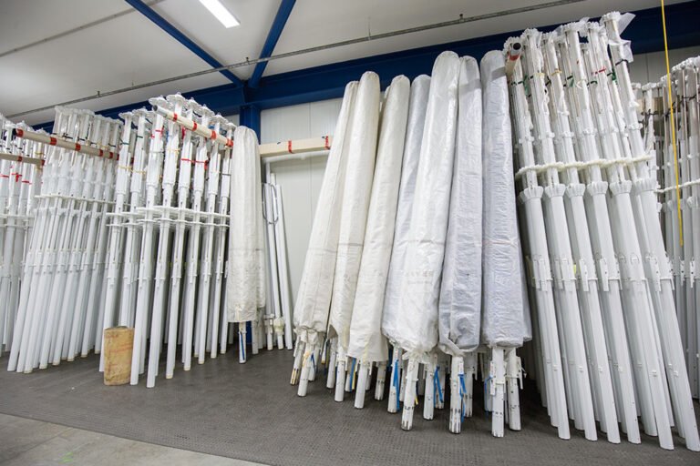 Service greatly influences the life span of a parasol. The exchangeable textile membrane of a Bahama parasol can – after being exposed to all sorts of weather conditions for years – be cleaned or replaced. Our service makes a full technical and general overhaul of the product such that they not only look attractive, but can defy the strongest of winds.