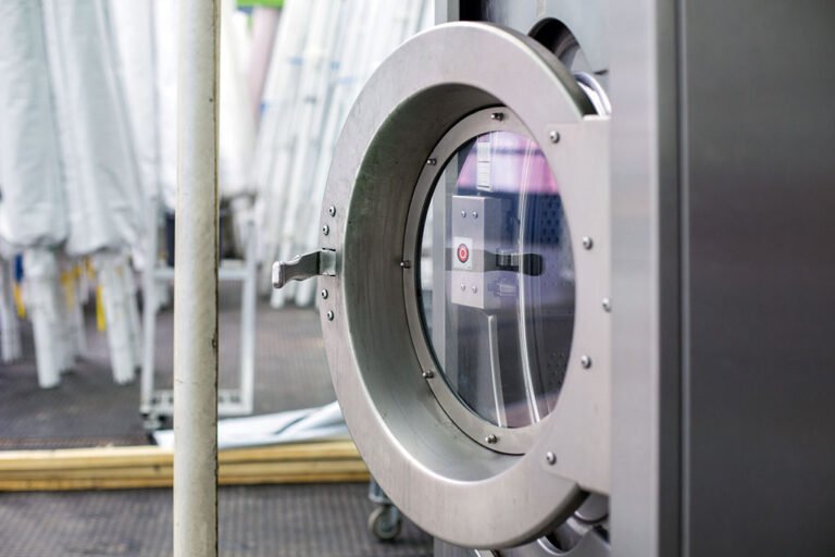 Complete service i.e. assembling and disassembling the large parasols, washing, cleaning and maintenance of the frame and textile membranes